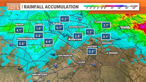 In summary, rainfall totals in Austin are crucial for understanding the local climate and its impact on various aspects of life. By monitoring these totals, individuals and organizations can make better-informed decisions regarding agriculture, water management, and outdoor activities. Whether you're a farmer, a city planner, or simply a resident of Austin, knowing the rainfall totals can help you navigate the ever-changing weather conditions.